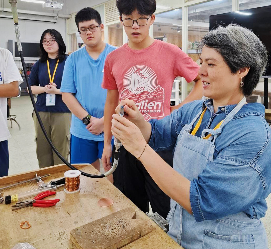 跨領域結合:新六藝不局限於單一技藝,而是將音樂、陶藝、書畫、花藝與茶道融入課程,培養學生的綜合能力。例如:陶藝工坊的柴燒茶具與花器,結合茶藝與花藝課程,最後以茶席藝術整合。