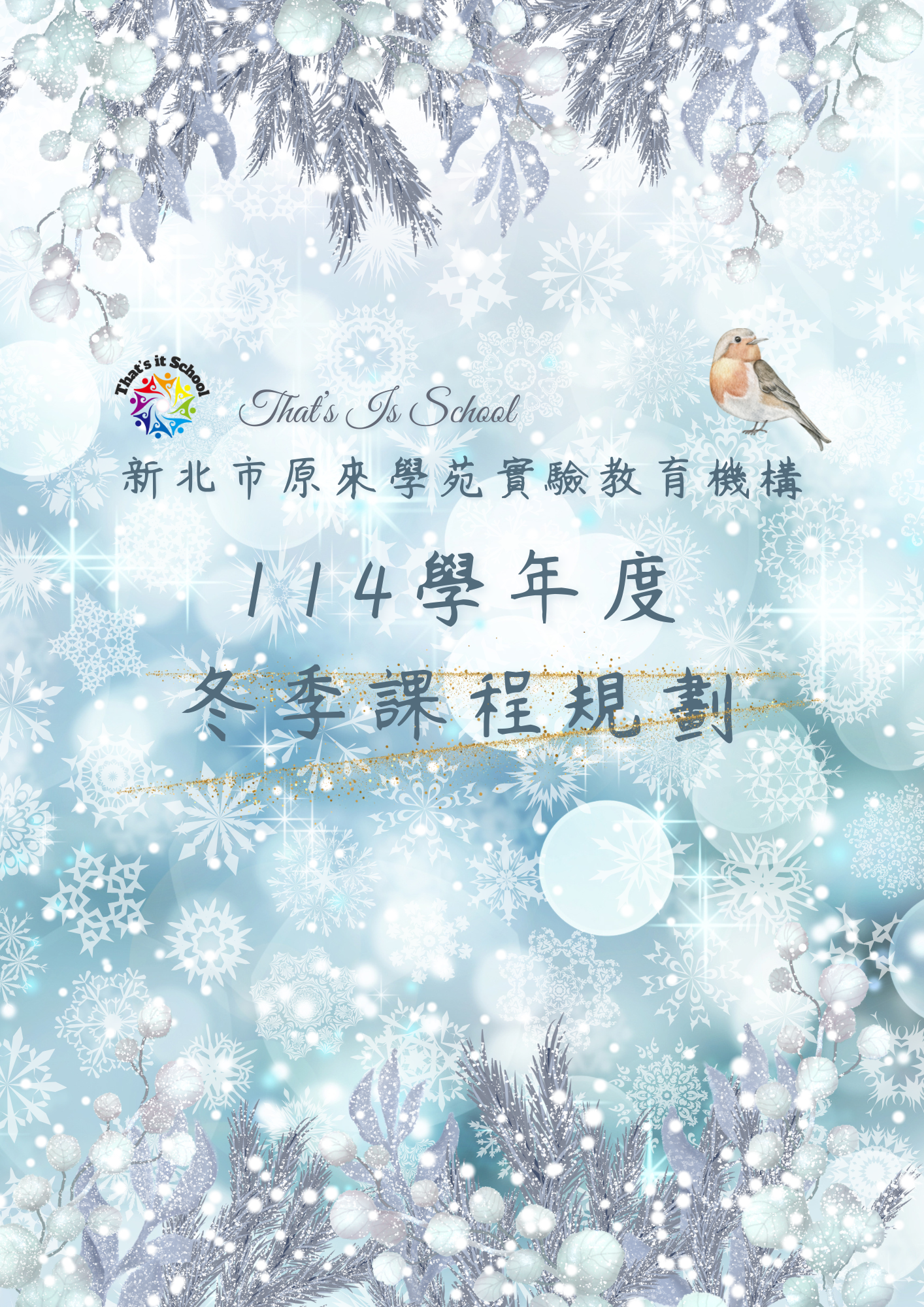 114學年度 冬季課程規劃 ⭕️114學年度 ❄️冬季課程規劃 A班導師:徐子涵老師+孫嘉駿老師(西瓜) 👉https://tinyurl.com/48ttnb5x B班導師:張益誠老師(阿誠) 👉https://tinyurl.com/f56bpfjp C班導師:朱佳仁老師(小朱)+洪聖筑老師(小葵) 👉https://tinyurl.com/jr7zn3nv 高中部導師:林彥宏老師(老帥) 👉https://tinyurl.com/5hc8zut7